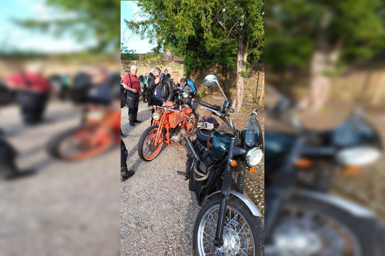 The last surviving premier event of the Essex section is our Bluebell camping week. The new team of organisers had to live up to past events run by the late Dick Hobart, Paul and Pauline Fletcher and six years of Lesley Radley doing it by herself. Dave Bradley answered the call for a secretary of the meeting and to say he did a comprehensive job would be an understatement. Other jobs were distributed through willing members and we had the making of an event. All four days routes covered about 80 miles in the most glorious sunshine you could wish for.Day one, twenty five bikes led by John Beckinsale arrived at Norton Heath café via tree lined lanes, not without some prize winning potholes. Amazing some that had already started out with breakfast were eating huge sausage or bacon sandwiches, this was only the coffee stop ? On to The Fox at Matching Tye where the lunch was preordered and demolished like they hadn’t eaten lately, crikes! They are gonna want a nap next. Dave Bradley returns to his bike to unlock his and Pam’s helmets but discovers he had snapped the lock shut but had no key to unlock it. Efforts with a pair of pliers had no effect when the chef appeared with a battery angle grinder. On to the Blue Egg for afternoon ‘tiffin’, coffee cake, ice cream, well of course they were hungry by now. We returned to The Museum of Power camp site where the locals split off for home and the campers their caravans.