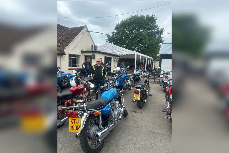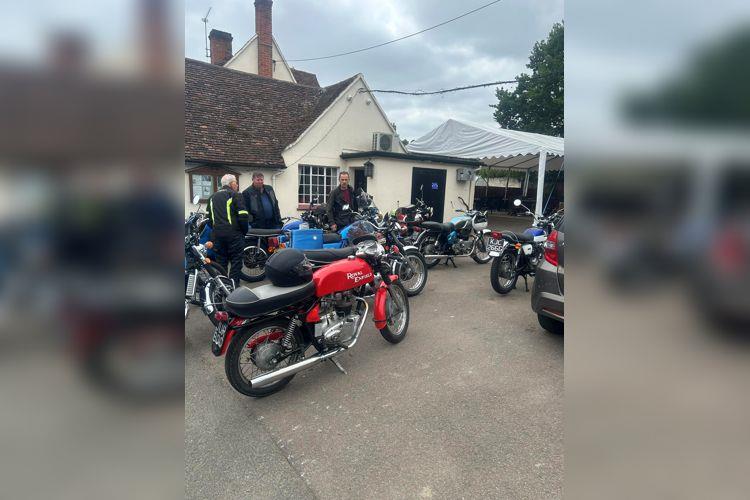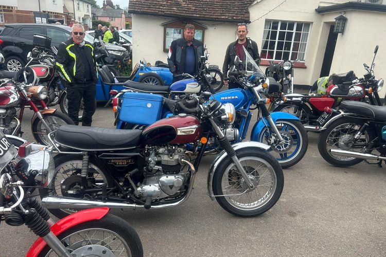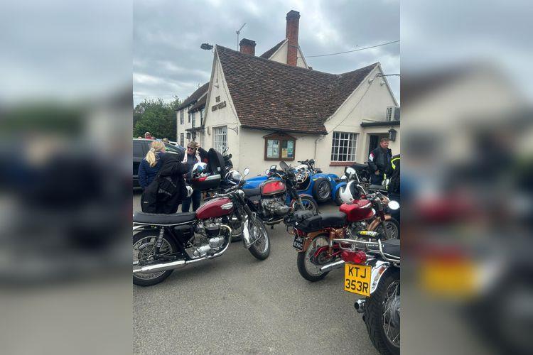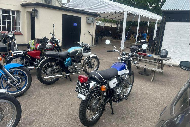 ticular mention to Simon Harris who managed to get his Bonny running in time to join us. He did spend a bit of time at the stop securing all sorts of things back on that had come loose during the ride though. Watch out Mr Back - he’s after your trophy methinks.