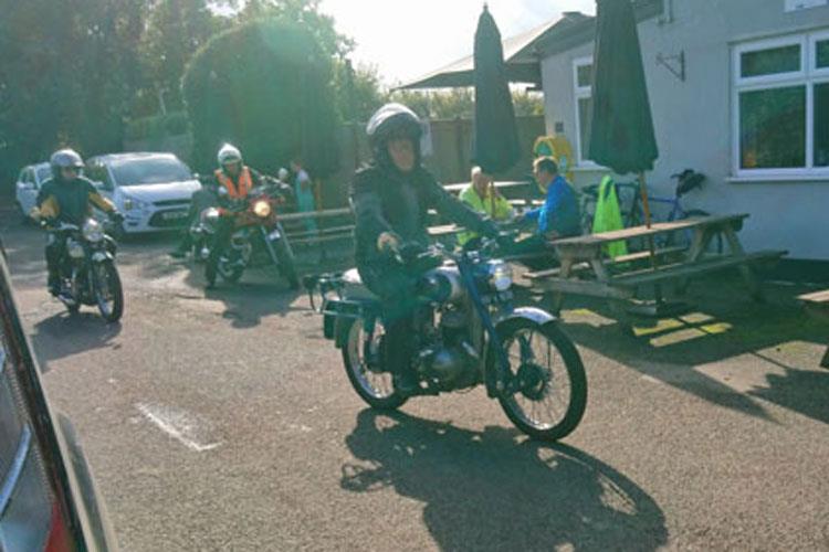 A very inauspicious start, or non- start to be accurate. Woke up to thick mist and a non cooperative Velocette, it had completed a faultless pre-ride ride on Monday and now refused to comply on the day. Nothing for it but to stoke up the stroker, apologies for those behind me, oh that would be everyone…
