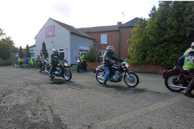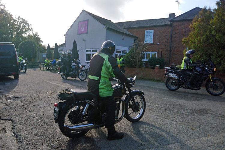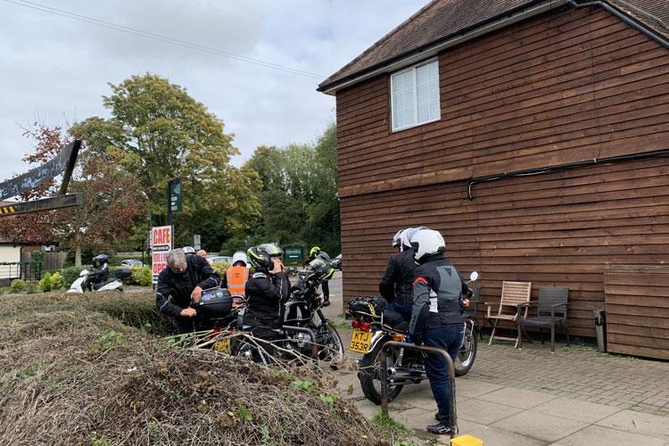 I duly arrived at our Battlesbridge rendezvous a tad later than I had planned to find 3 fellow bikers and the mist clearing. My thoughts were, I hope we get a few more but my doubts were groundless. I was very pleased that by 9:55 the sun was shining and we had 20 bikes.