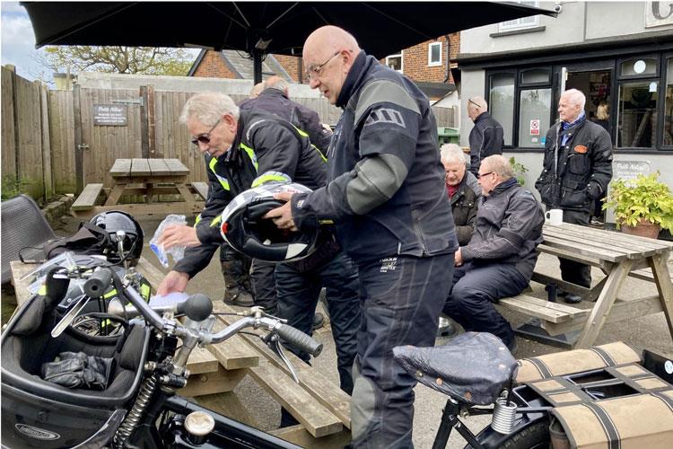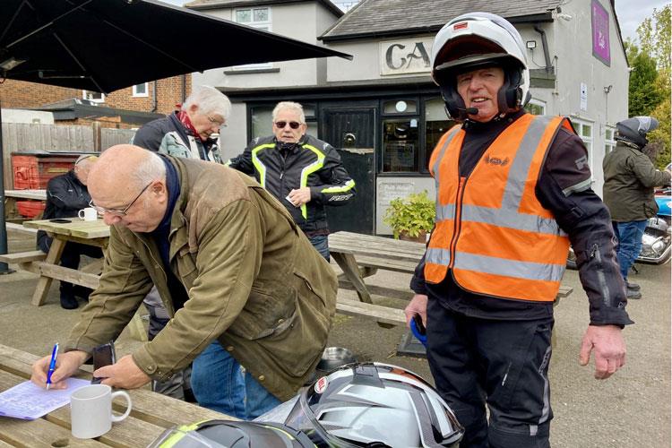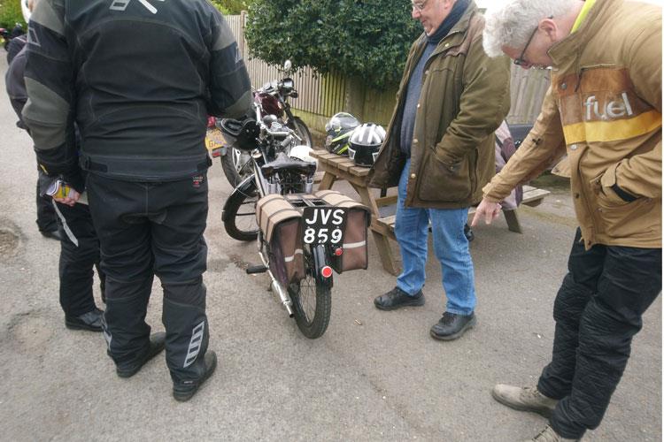 Putting signing on sheets and money bag on table I asked them to to sign on and put a pound in bag. Nobody moved just sat staring at me, what now? I will wait till Mr Secretary to turn up and sort them out. When chatting to one of the riders found out they were from the Royal Enfield club off to Shuttleworth. OPPS!